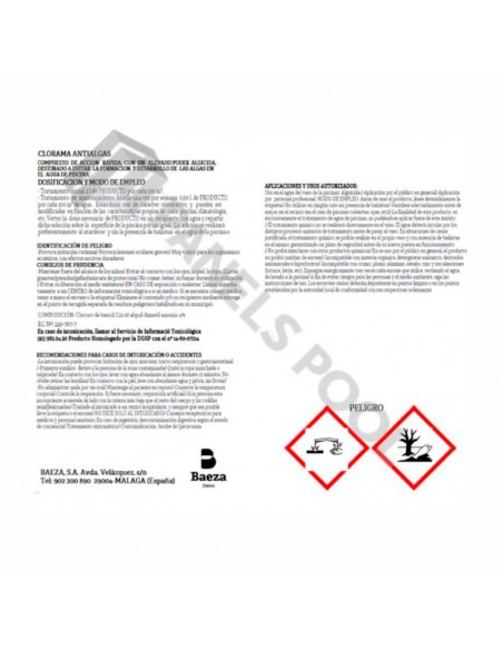 Antialgas líquido de alta concentración, compuesto a base de productos de carácter tensoactivo y con poder bactericida, algicida y fungicida, para evitar la formación y desarrollo de algas. Envase 5 Kg. Utilice los biocidas de forma adecuada. Lea la información y etiqueta antes de usarlo.